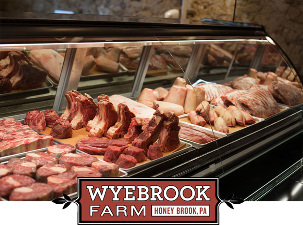 Located in Honey Brook, PA, Wyebrook Farm provides an alternative to the industrial food supply. By creating a diverse polyculture on their farm, Farmer Dean and his staff produce the healthiest animals and best food without the use of artificial fertilizers, pesticides, herbicides, hormones or antibiotics. Many local residents and area chefs have already tasted the high quality meats Farmer Dean raises – and now you can too!